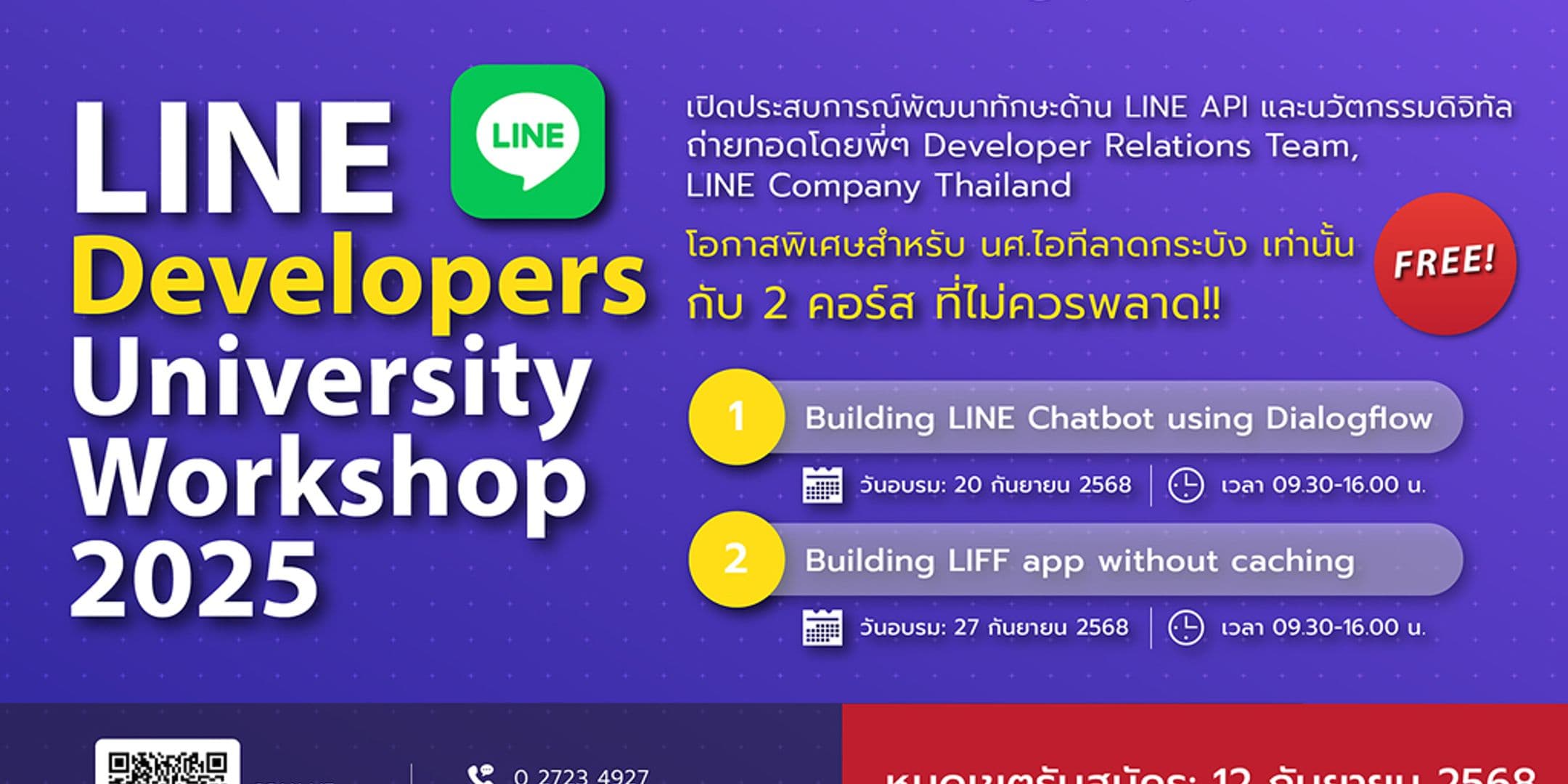 ðāļŠāļĄāļąāļāļĢāđāļĨāļ°āļāļđāļĢāļēāļĒāļĨāļ°āđāļāļĩāļĒāļāđāļāļīāđāļĄāđāļāļīāļĄāđāļāđāļāļĩāđ: https://www.it.kmitl.ac.th/th/services/khorongkan-line-developers-university-workshop-2025