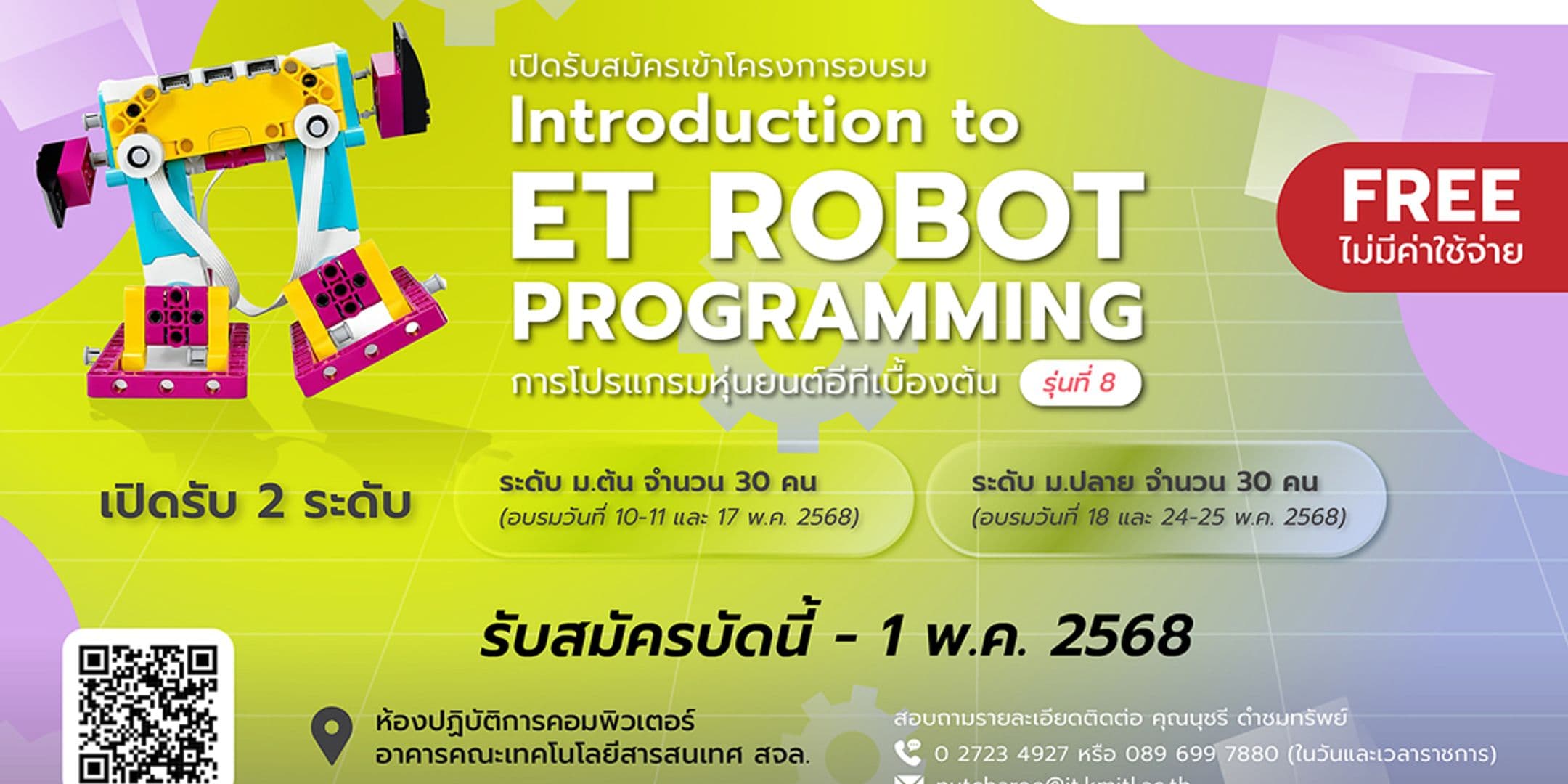 ในวันที่ 18 และ 24 – 25 พฤษภาคม 2568 (เสาร์และอาทิตย์) จำนวน 3 วัน ตั้งแต่เวลา 09.00 – 16.00 น. ณ อาคารคณะเทคโนโลยีสารสนเทศ สจล.